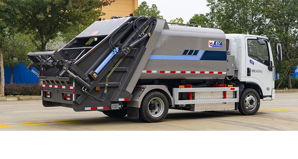 弧形箱體采用四軸卷板機滾弧一次成型,減少焊接面,增大容積率;優(yōu)化滑板角度及油缸受力點,壓縮比超市場競品20%。