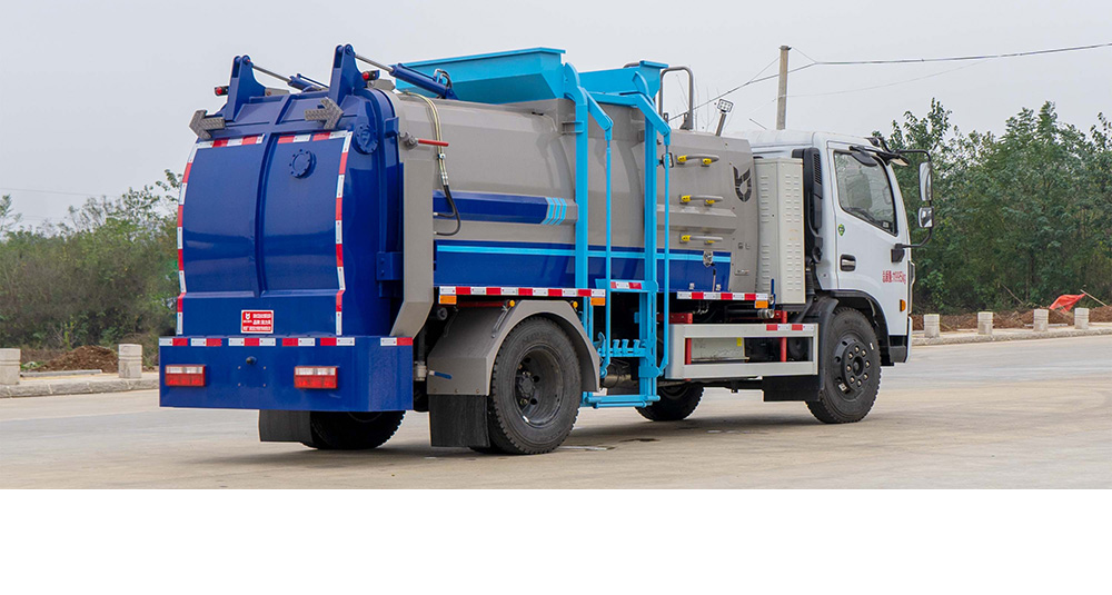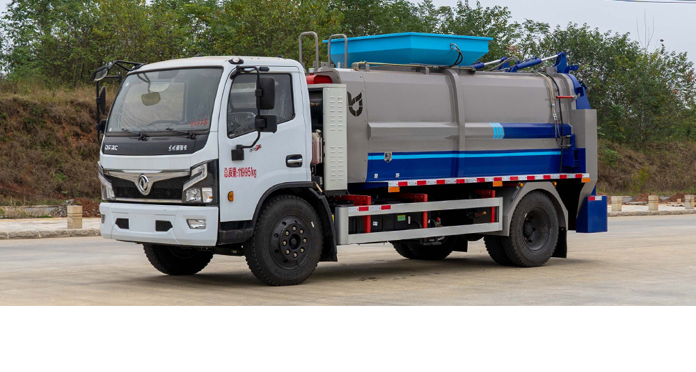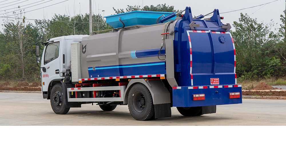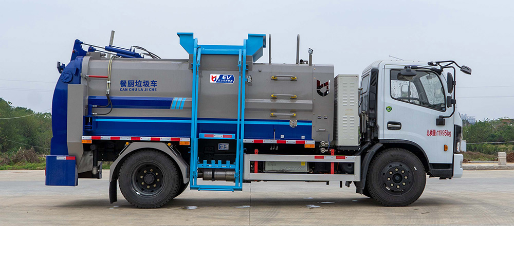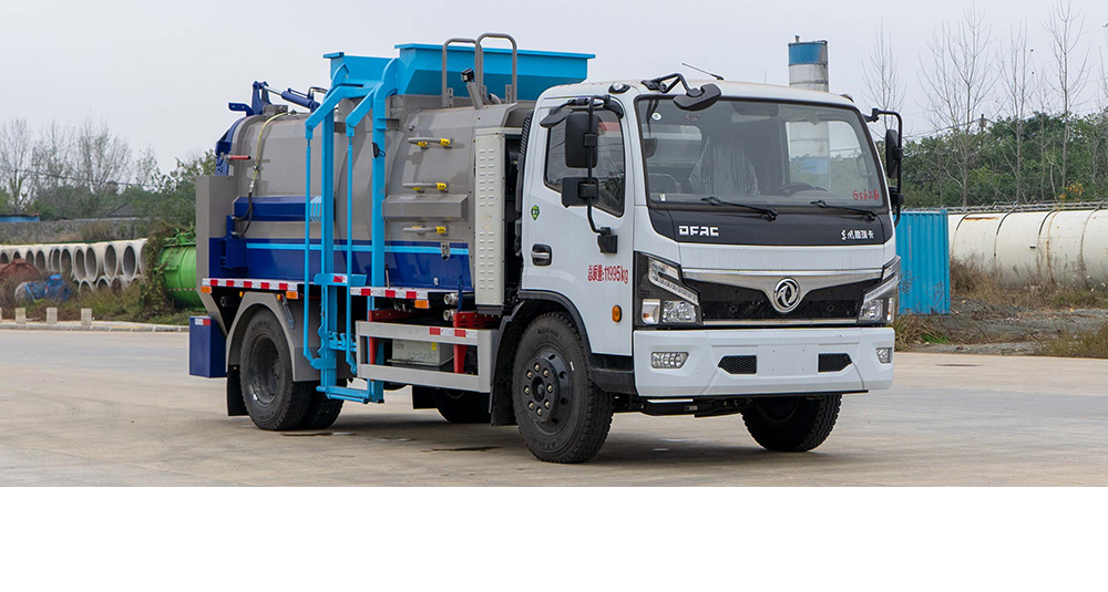 垃圾箱底部設置大量過濾孔,實現(xiàn)箱內餐廚垃圾固液的初步分離,裝載能力強并配備有大容量污水箱;配套液壓驅動高壓清洗系統(tǒng),可對整車及工作裝置進行清洗。