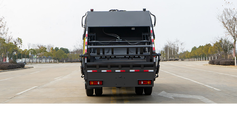 弧形箱體采用四軸卷板機(jī)滾弧一次成型,減少焊接面,增大容積率;優(yōu)化滑板角度及油缸受力點,壓縮比超市場競品20%。