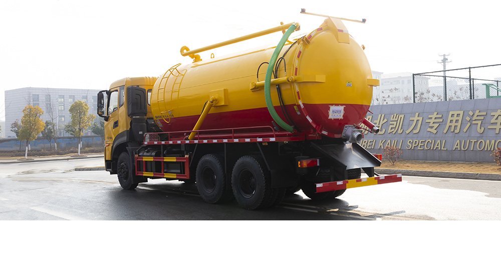 吸污車由汽車底盤、取力器、傳動軸、真空吸污泵、壓力罐體、液壓部分、管網(wǎng)系統(tǒng)、真空壓力表、視糞窗、洗手裝置等組成,隨車配置大功率真空吸污泵和優(yōu)質(zhì)液壓系統(tǒng),罐體封頭一次壓鑄成型、罐體可后開、雙頂自卸。