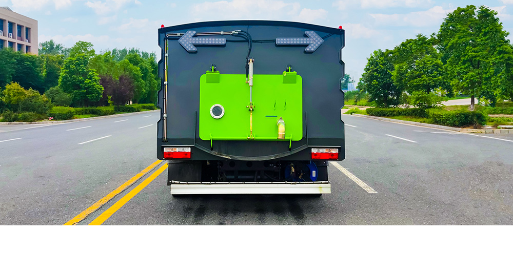 清水箱和垃圾箱分體布置,有效空間利用最大化,一次連續(xù)作業(yè)時(shí)間長(zhǎng)。同時(shí)在作業(yè)過(guò)程中可通過(guò)污水排放裝置對(duì)污水進(jìn)行排放,還可隨時(shí)增灌清水繼續(xù)作業(yè):垃圾箱采用雙油缸自卸卸料,同時(shí)箱內(nèi)設(shè)有大流量高壓噴,可快速?zèng)_洗垃圾。
