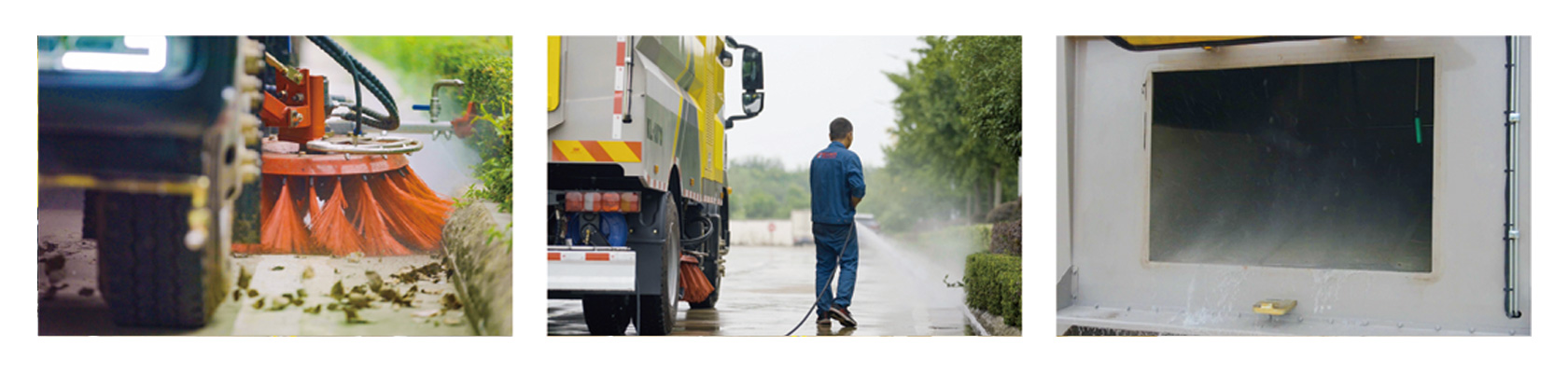 具有路面灑水、沖洗、掃路、清洗、降塵等多種功能。同時(shí)配有高壓水槍可對(duì)道路衛(wèi)生死角、牛皮癬及車輛自身進(jìn)行清潔作業(yè)采用“中置兩掃盤+中置寬吸嘴+內(nèi)置高壓主噴桿+左右高壓側(cè)噴桿”布置,小流量高壓水泵,左右噴桿V形布置和吸嘴內(nèi)置主噴桿無(wú)間隙高壓噴嘴噴水,洗凈率高、作業(yè)速度快。