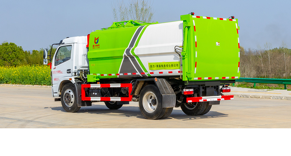 箱體采用武鋼優(yōu)質(zhì)碳鋼制作,造型美觀,耐腐蝕性能好,投料口采用密閉形式,防止氣味散發(fā);該車液壓系統(tǒng)簡(jiǎn)單,采用電控、手控雙系統(tǒng),可實(shí)現(xiàn)一鍵控制,具有操作簡(jiǎn)便、裝載容量大、故障率低、維護(hù)方便等優(yōu)點(diǎn)。