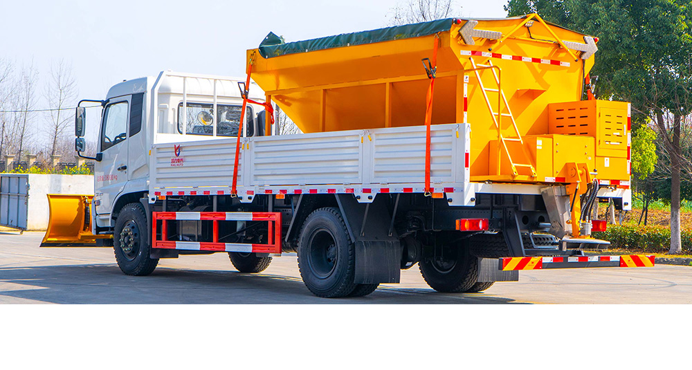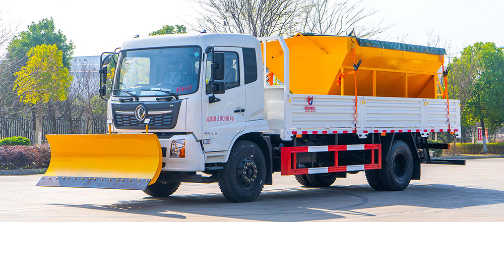 凱力風(fēng)牌除雪車是凱力集團(tuán)環(huán)境清洗事業(yè)部技術(shù)團(tuán)隊(duì)設(shè)計(jì)、研發(fā)、制造的專業(yè)化除雪設(shè)備,適用于高等級(jí)公路、城市道路、機(jī)場、廣場、風(fēng)景區(qū)等路段的除雪、融雪、掃雪等。該車是在皮卡、廂式貨車、自卸車的基礎(chǔ)上加裝前置除雪鏟、掃雪滾刷和融雪撒布機(jī),機(jī)械、液壓、電氣三部分合為一體的特種除雪作業(yè)車。該車前置除雪鏟、掃雪滾劇互換使用,積雪較厚時(shí)用掃刷將其掃至馬路兩側(cè),被車碾壓后或者有結(jié)冰的積雪用推鏟推至馬路兩側(cè);后置融雪撒布機(jī),車輛在冬季除雪的過程中撒布機(jī)拋酒融雪劑防止?jié)窕穆访娼Y(jié)冰影響交通,覆蓋過融雪劑的路面能很好的解決路面結(jié)冰,從而能使車輛安全的通過,不受天氣的影響。