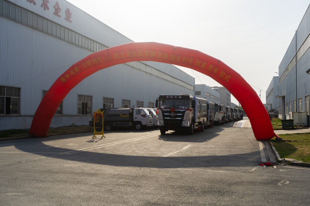凱力風(fēng)東風(fēng)華神新能源洗掃車(chē)批量發(fā)車(chē)儀式