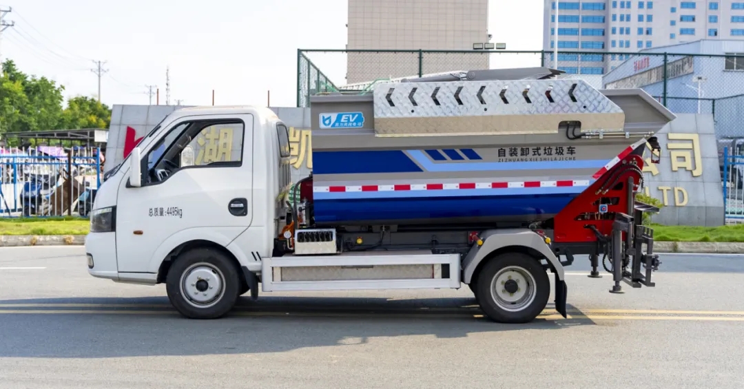 凱力風(fēng)小神童自裝卸式垃圾車,可上綠牌,車身小巧、靜音環(huán)保,續(xù)航里程達(dá)115km。液壓推板、裝料更多。優(yōu)質(zhì)液壓、穩(wěn)定可靠。操作簡(jiǎn)單、便于維修。