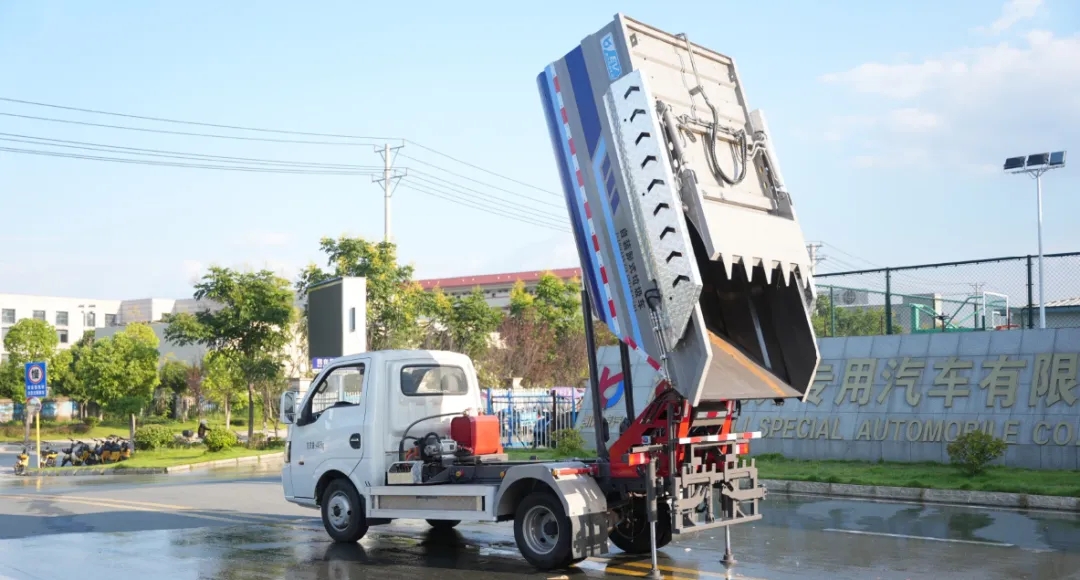 底盤換電動(dòng),上裝升級(jí),三電系統(tǒng)穩(wěn)定可靠。刮板進(jìn)料、壓縮率高。舉升自卸、卸料干凈。翻桶機(jī)構(gòu)、進(jìn)料快捷。自動(dòng)化高,電液聯(lián)合。