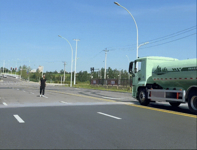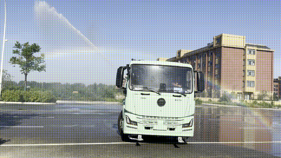 想象一下,你開著凱力風星辰純電動灑水車如常行駛在街道上,水霧在陽光下畫出彩虹。當路邊出現(xiàn)行人或非機動車,在15米的識別范圍內(nèi),無需任何人工干預,灑水車前沖的強勁水流便會在瞬間精準、無聲地自動關閉。水流暫停,車輛平穩(wěn)前行,待行人安全通過,噴灑從容恢復。沒有驚慌失措的躲避,沒有意外的濕漉,只有一份科技賦予的體貼與尊重。